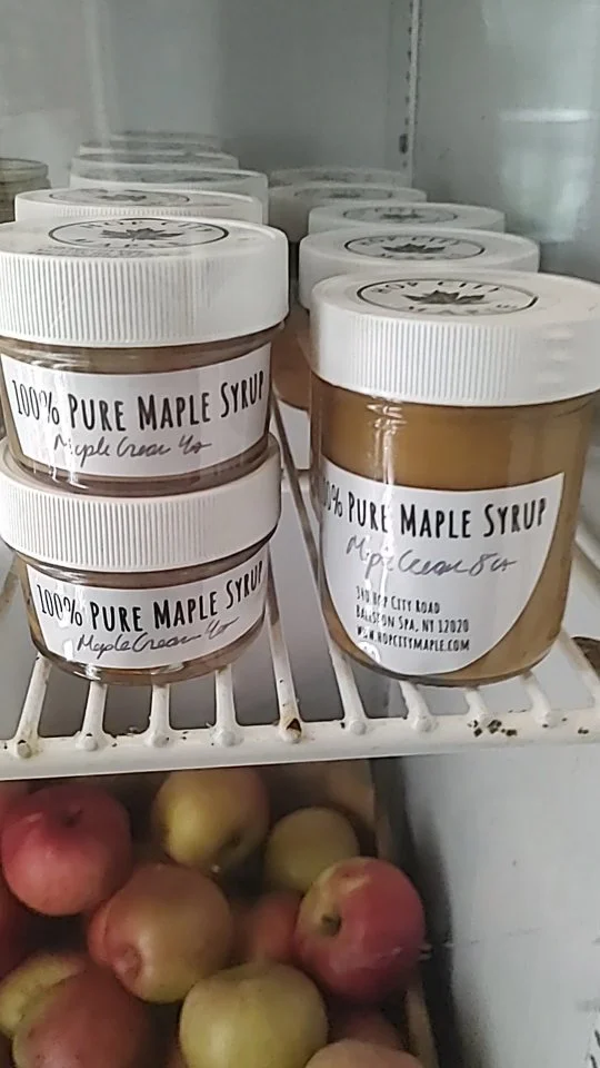 Come visit our 24/7 Roadside Farm Stand to pick up your favorite Maple Syrup anytime! You will find our regular maple syrup as well as bourbon-barrel aged maple syrup, maple cream (butter), granulated maple sugar, and as available maple lollipops and honey .